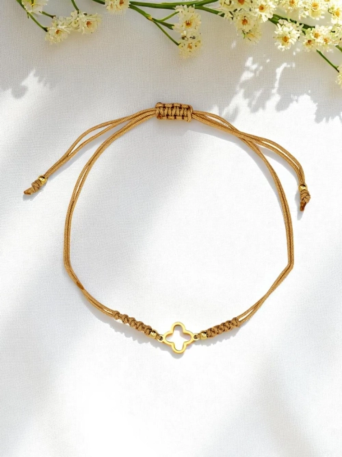 • Bracelet à corde réglable au style marin, décoré d’un discret pendentif doré. Léger et élégant, parfait pour les journées d’été. Il apporte une touche d’éclat doré à toutes les tenues, alliant ambiance bord de mer et pointe de luxe. Idéal pour la plage et