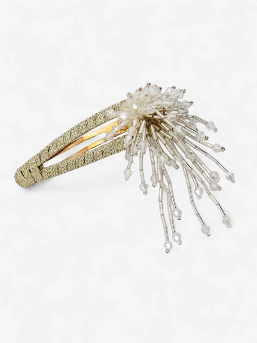 Aurelia Stella est une épingle à cheveux exclusive inspirée par l'élégance italienne et l'artisanat emblématique. Fabriquée à partir d'un alliage métallique de haute qualité, recouvert d'une couche protectrice contre le ternissement, et d'un tissu bouclé doux qui brille subtilement à la lumière. Elle est ornée de cristaux synthétiques et de perles de verre sertis à la main, créant une composition spectaculaire rappelant un éclat d'étoiles. Le produit ne contient pas de nickel, ce qui le rend sûr pour les peaux sensibles et idéal pour un port prolongé.L'épingle à cheveux Aurelia Stella est un ajout unique à toute tenue. Son motif unique et son éclat en font un choix idéal tant pour les grandes occasions que pour les tenues de tous les jours nécessitant une touche glamour. Sa construction délicate mais durable assure une tenue sûre, même dans les cheveux épais, sans les tirer ni provoquer d'inconfort.Découvrez trois façons tendance de la coiffer :1. Pour une soirée – associez Aurelia Stella à une élégante robe maxi et à des bijoux subtils pour donner à l'ensemble un caractère luxueux.2. Au bureau – associez-la à un blazer classique et à une coiffure simple, comme une queue de cheval basse ou un chignon lisse, en ajoutant une touche de chic au quotidien.3. Au quotidien – attachez-la à des ondulations lâches ou à une tresse légère pour souligner votre style individuel et suivre les dernières tendances.Entretien et soin : nettoyez l'épingle délicatement avec un chiffon humide. Rangez-la dans un sac en tissu séparé pour éviter les rayures et l'enchevêtrement avec d'autres bijoux. Évitez le contact avec l'eau, les parfums et les produits chimiques, ce qui permettra de préserver son éclat plus longtemps.Aurelia Stella reflète les tendances phares de la saison : les perles, les cristaux et les motifs inspirés du ciel règnent actuellement sur les podiums et parmi les fashionistas du monde entier. Cette épingle à cheveux complétera parfaitement toute tenue, alliant modernité et classicisme subtil.