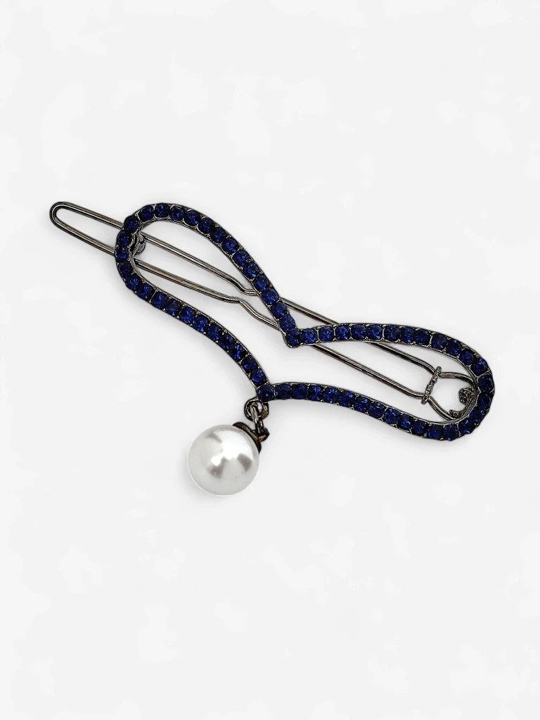 - Élégante épingle à cheveux Azzurra Perla avec des cristaux bleus et une perle – une décoration de cheveux idéale pour les occasions spéciales.