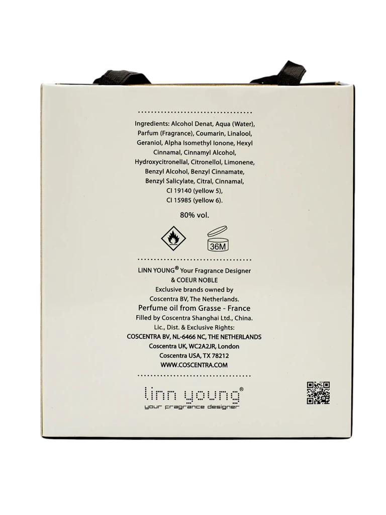 • Un parfum élégant s’ouvre sur des aldéhydes frais, de la bergamote, du citron et du néroli, s’épanouissant en un cœur floral de rose, de lys et de jasmin. Une base chaleureuse de vanille, vétiver, ambre et bois de santal donne à la composition profondeur