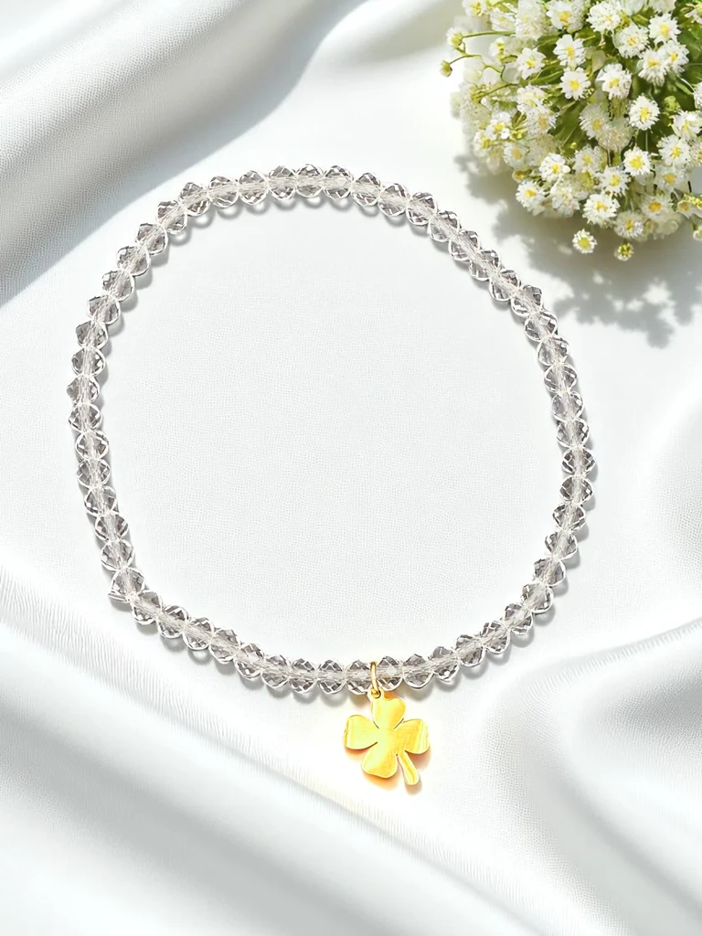 - Bracelet avec perles et pendentif trèfle, un talisman porte-bonheur tendance. Délicat et élégant, il symbolise la prospérité, l’espoir et l’énergie positive. Parfait pour un port quotidien comme accessoire subtil au message unique.