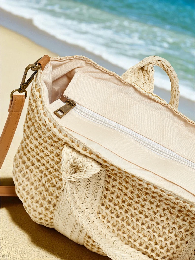 - Sac en paille élégant avec un compartiment unique et une poche, fermé par une fermeture éclair. Léger et spacieux, idéal pour les journées d'été. Parfait pour les tenues décontractées, il offre confort et organisation tout en conservant un charme de vacan