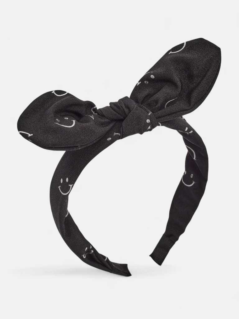 - Adorable bandeau pour enfants avec un nœud orné d'un imprimé de visages souriants. Confortable, élastique et parfait pour les looks de tous les jours - il ajoutera de la joie à chaque look d'enfant !