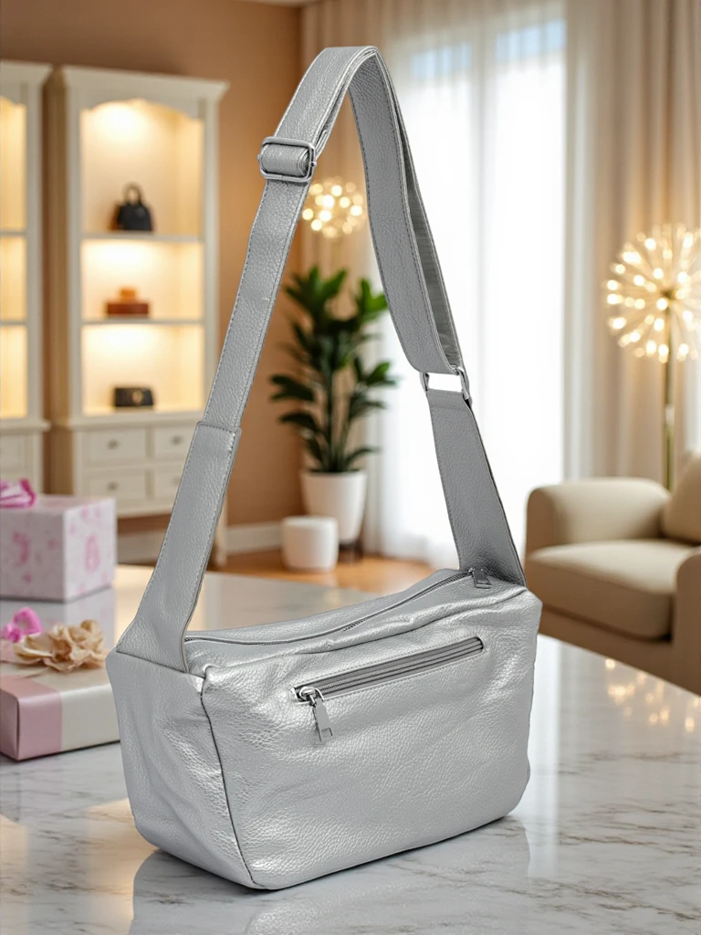 • Sac à main élégant en cuir écologique avec 1 compartiment et 3 poches. La bandoulière réglable assure le confort, et la coupe classique s'adapte à tous les styles - parfait pour le quotidien et les occasions spéciales.