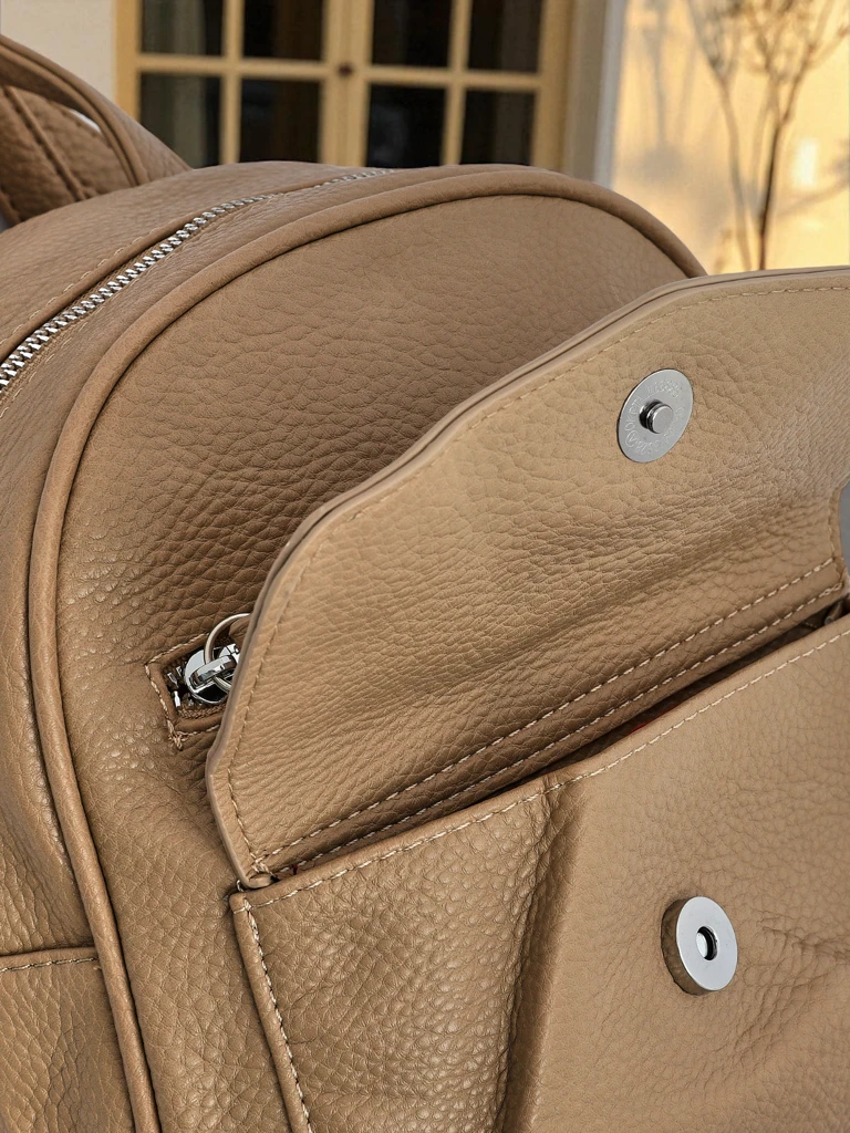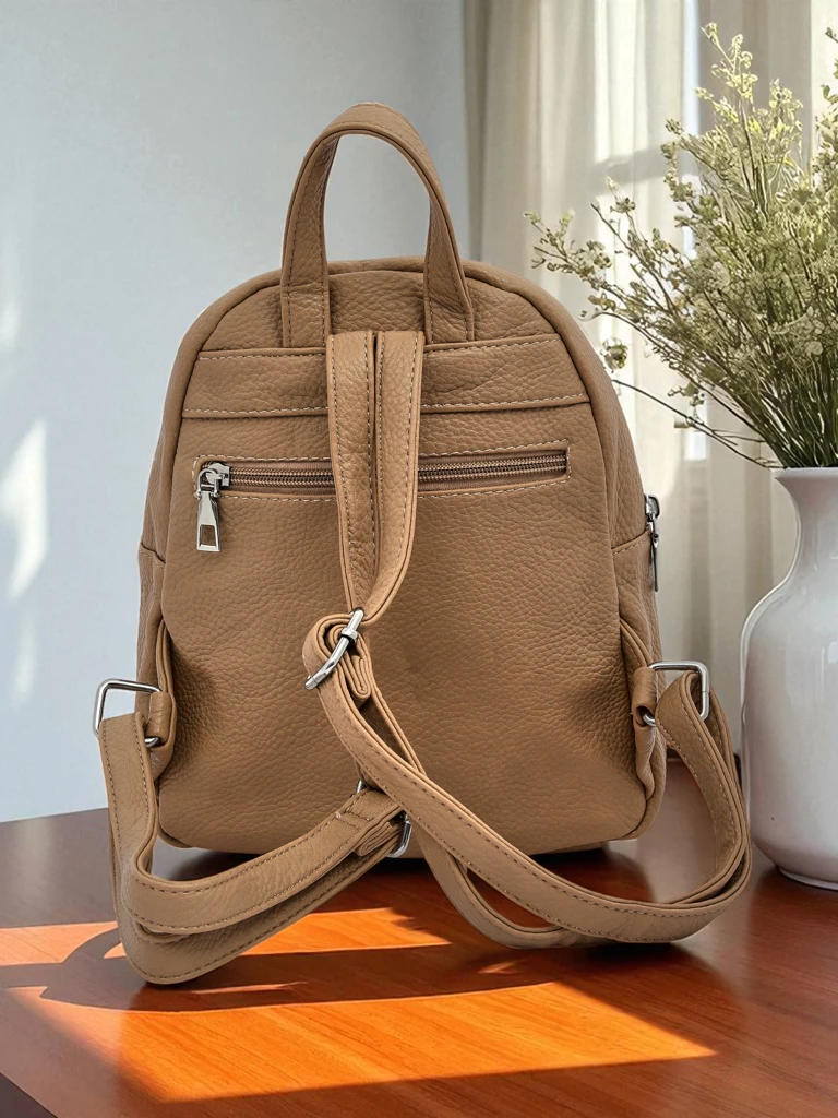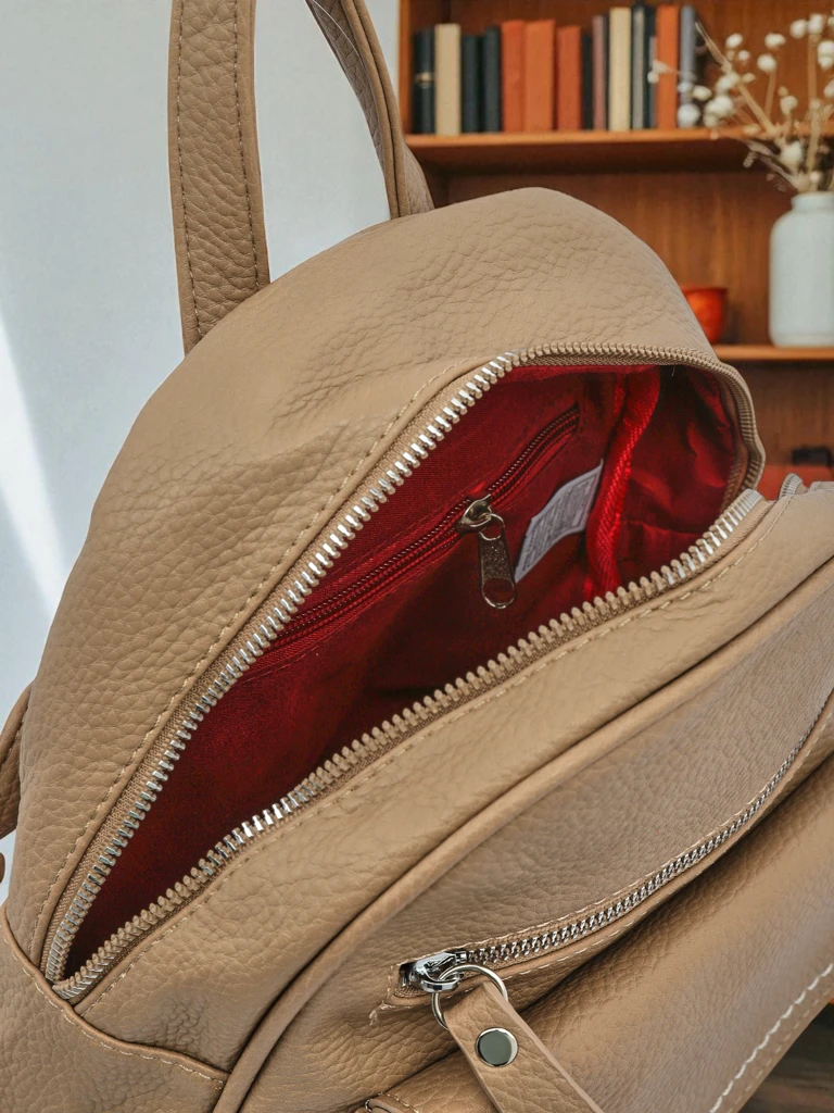 - Sac à dos compact en cuir écologique avec un compartiment et trois pochettes pour les petits objets. Les bretelles réglables assurent un port confortable. Élégant, léger et pratique, idéal pour la ville, l'université et les sorties quotidiennes.