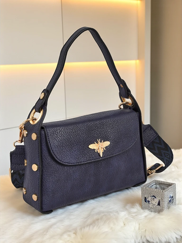Sac à Main Femme Melia Cielo – Cuir Écologique Marine avec Motif Abeille