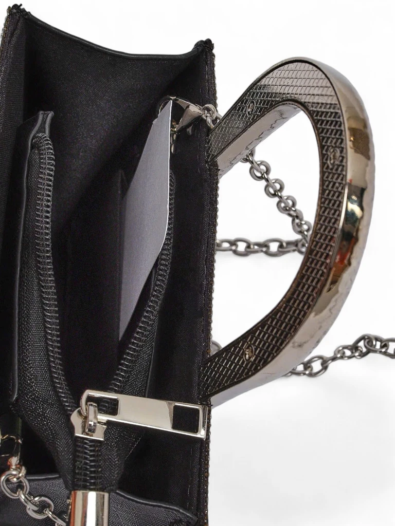 - Élégant clutch orné de zircons brillants, 1 compartiment, fermeture éclair. Des anses élégantes et une chaîne décorative ajoutent du chic. Idéal pour les occasions spéciales - éblouissez avec classe !