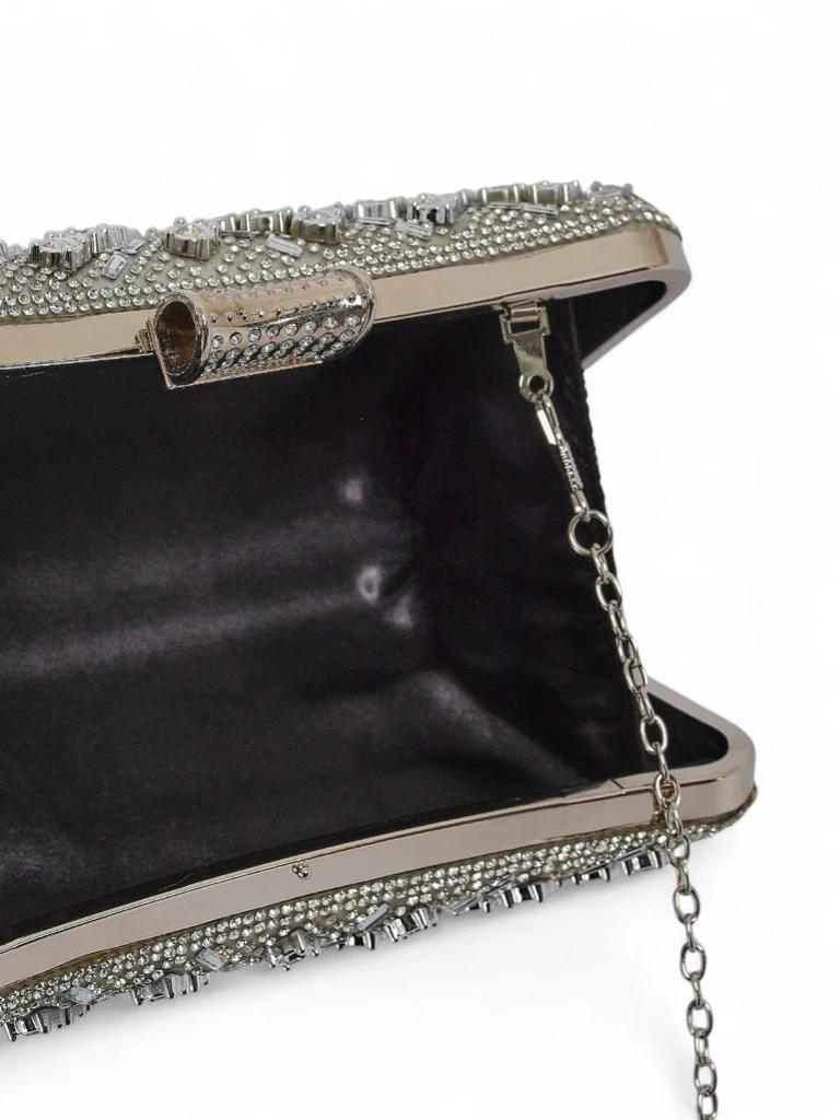 - Pochette de soirée étincelante, ornée de strass brillants. Une délicate chaînette ajoute légèreté et classe. Idéale pour les grandes occasions – elle attire les regards et complète chaque tenue.
