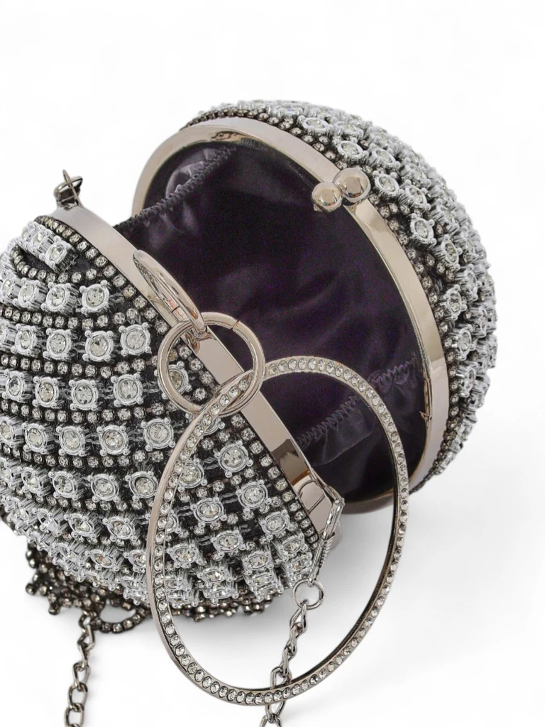 • Pochette sphérique ornée de strass scintillants et dotée d'une élégante chaîne pour l'épaule. Parfaite pour les soirées, elle attire les regards et complète toutes les tenues.