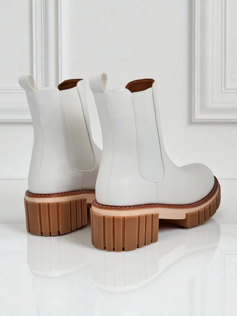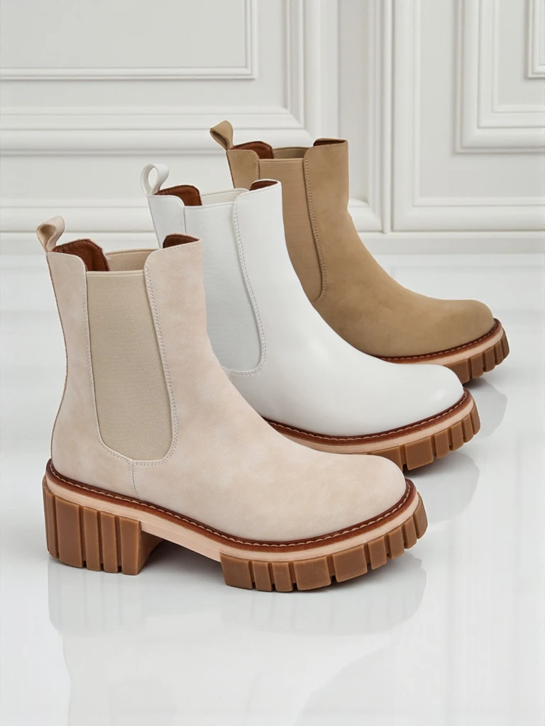 Les bottines beiges Callista sont une combinaison exceptionnelle de classique et de moderne dans une version féminine. Fabriquées en cuir écologique suédé de haute qualité, elles offrent durabilité et un matériau agréable au toucher qui imite parfaitement le daim naturel, tout en étant facile à entretenir et respectueux de l'environnement. Le processus de production de ce cuir consiste en un traitement minutieux des microfibres, donnant un effet de finition mate profonde et assurant une résistance même en cas d'utilisation quotidienne. De plus, le matériau possède un certificat de qualité OEKO-TEX, confirmant l'absence de substances nocives.Les bottines Callista sont déclinées dans une teinte beige clair tendance. Le talon bloc leur confère un caractère moderne, tout en garantissant stabilité et confort lors de la marche, et le bout rond assure un confort même tout au long de la journée. La doublure douce et les inserts latéraux élastiques rendent les chaussures faciles à enfiler et s'adaptent parfaitement à la forme du pied.Principaux avantages :- Confort exceptionnel grâce au talon bloc stable,- Design universel – convient aussi bien aux styles décontractés qu'aux tenues plus élégantes,- Résistance à la saleté et facilité de nettoyage (une brosse douce ou un chiffon humide suffisent),- Matériau écologique protégeant l'environnement.Idées de tenues :1. Pour un look urbain quotidien, portez-les avec un jean ajusté, une chemise blanche et un manteau ample,2. Pour un rendez-vous ou une soirée, associez les bottines à une robe midi évasée et un long cardigan,3. Découvrez l'élégance en les associant à un tailleur de couleur neutre – une touche moderne pour les tenues de bureau !Entretien et rangement :Nettoyez les bottines avec une brosse douce pour daim ou un chiffon humide sans détergents. Protégez-les de l'humidité et de l'ensoleillement intense – il est préférable de les ranger dans un endroit aéré sur les semelles intérieures d'origine ou dans une boîte.Actuellement, les semelles massives et les talons blocs expressifs sont l'une des tendances automnales les plus importantes, et la couleur beige classique fait de ces bottines une proposition universelle pour toute femme qui apprécie le confort, le style et les tendances de la mode actuelles.