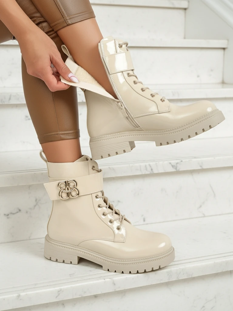 - Bottines beiges pour femmes en cuir écologique, avec fermeture éclair et bout rond – modernité, confort et style en un.