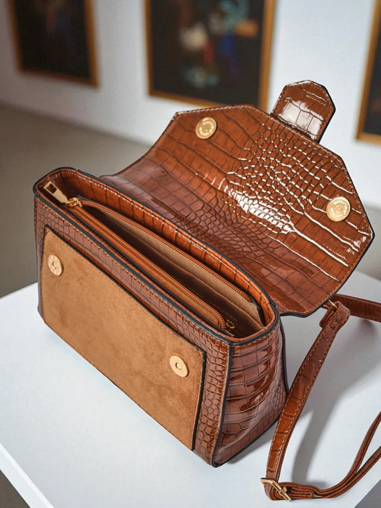 Le sac à main Callista est une combinaison de style raffiné et d'approche contemporaine de l'écologie. Il est fabriqué en cuir écologique de haute qualité et en cuir écologique suédé, qui non seulement reproduisent la texture naturelle, mais sont également respectueux de l'environnement. Le processus de production de ces matériaux est basé sur la réduction de l'utilisation de substances chimiques et de la consommation d'eau, ce qui confirme leur caractère écologique. Le devant en daim du sac à main enchante par sa douceur au toucher, tandis que les surfaces en cuir écologique avec une texture de crocodile ajoutent du luxe et du caractère à l'ensemble. Les ferrures dorées et la fermeture éclair solide, associées à un aimant, assurent la sécurité des objets stockés. L'intérieur du sac à main a été soigneusement planifié - de nombreuses poches et la division de l'espace permettent d'organiser facilement les accessoires les plus nécessaires, tels que le téléphone, le portefeuille ou les clés. Le modèle Callista est dédié aux femmes qui apprécient le confort, l'esthétique et les solutions modernes. Les principaux avantages du sac à main Callista : - La construction légère et la taille compacte (24x16x10 cm) le rendent parfait pour les sorties quotidiennes et les réunions. - Les matériaux écologiques garantissent la durabilité, la facilité de nettoyage et la résistance aux dommages. - La couleur marron foncé universelle s'inscrit dans les tendances de la mode actuelle et s'adapte à de nombreux styles. Propositions de style : 1. Ensemble décontracté : jeans ajustés, t-shirt blanc, manteau caramel et sac à main Callista - un look idéal pour le shopping et les rencontres entre amis. 2. Business chic : jupe crayon, chemisier en soie et talons aiguilles - un sac à main élégant complétera le look de bureau pour une réunion d'affaires importante. 3. Style bohème : robe vaporeuse, bottes de cow-boy et cardigan long - Callista apportera légèreté et modernité à chaque style estival. Comment entretenir le sac à main : - Nettoyer avec un chiffon humide et un détergent doux destiné au cuir écologique et au daim. - Conserver dans un endroit aéré, de préférence avec un rembourrage à l'intérieur pour protéger la forme. - Éviter l'exposition prolongée au soleil et le contact avec l'eau. Le sac à main Callista s'inscrit dans les dernières tendances de la saison - la combinaison du marron classique et du duo de structure en daim et de cuir à imitation crocodile est visible sur les podiums du monde entier. C'est un must have pour toute femme moderne qui apprécie le style et la fonctionnalité.