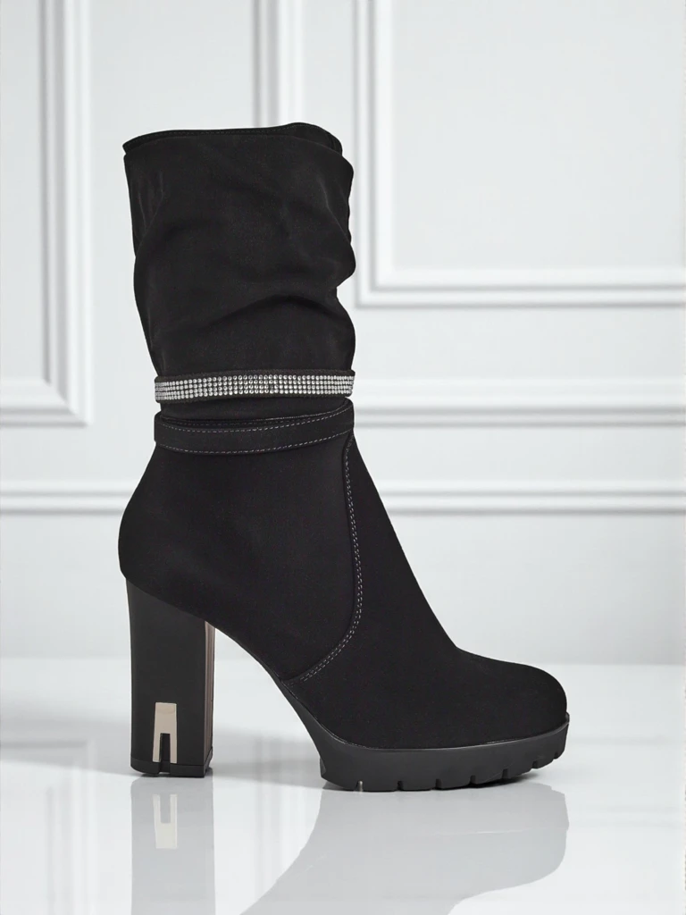 - Les bottines pour femmes sont la solution idéale pour les journées plus fraîches. Les chaussures sont fabriquées en cuir écologique mat et remplies d'une fourrure délicate. Modèle orné de zircons, fermé par une fermeture éclair avec un bout rond. Un super