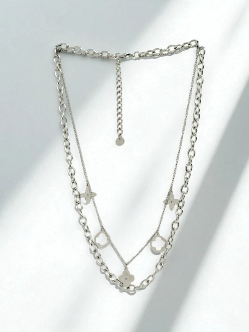 - Collier argenté Florentia Stella avec double chaîne et pendentifs – idéal pour toutes les tenues.