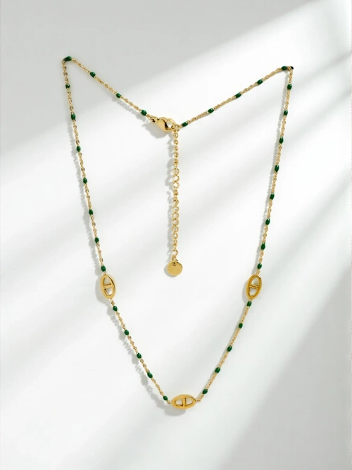 Collier Aurelia Verde – Maillons dorés avec pierres vertes Greca