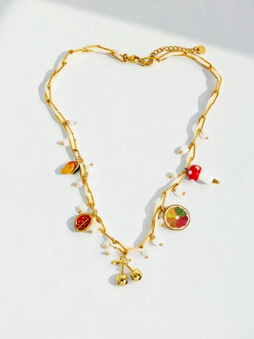 - Collier plaqué or Hera Classica avec fruits, émail et perles – un accessoire tendance pour chaque style.