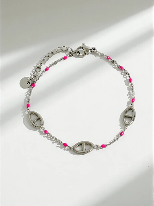 Bracelet Callista Elegantia avec maillons et perles roses, acier chirurgical