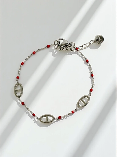 Grâce à la couleur neutre du métal et aux accents rouges vifs et contrastés, le bracelet s'harmonise avec de nombreux styles. Cet accessoire est léger, confortable à porter au quotidien et exceptionnellement féminin, ajoutant de la finesse à chaque mouvement du poignet.