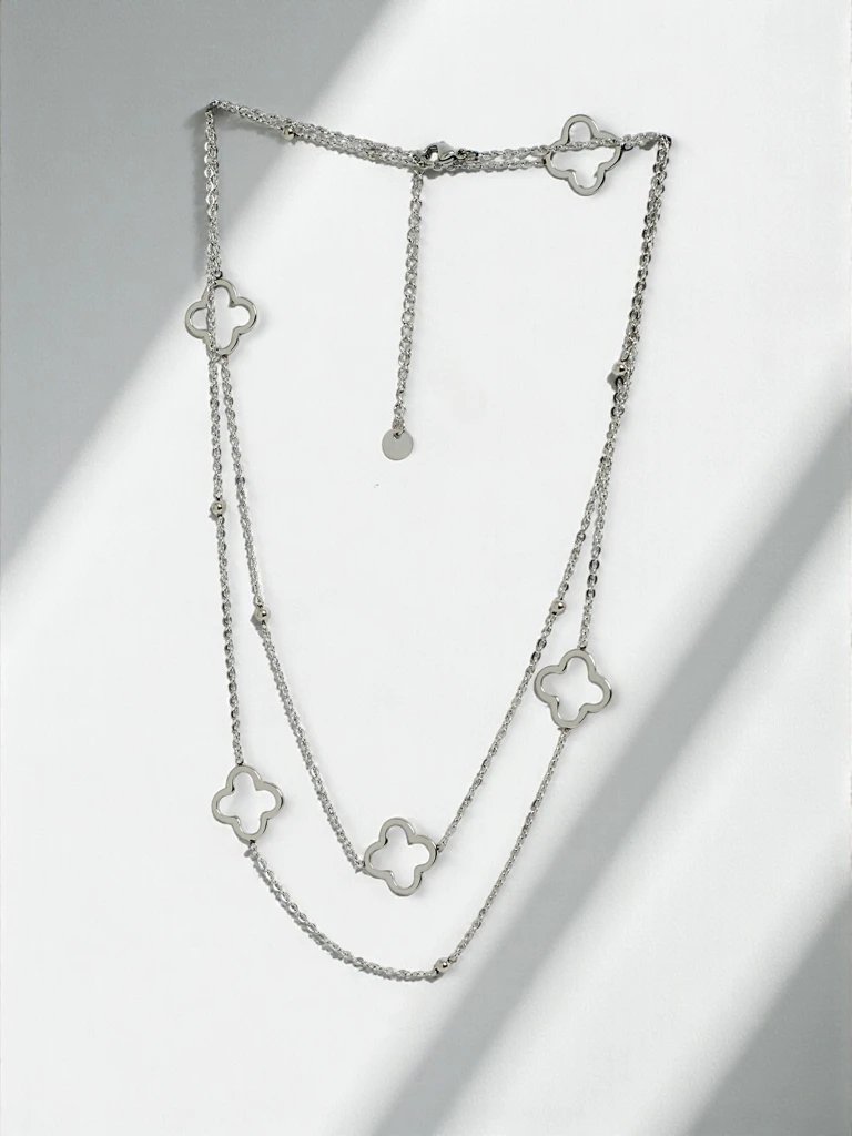 Le collier en argent Livia Quattro Argento est une combinaison d'élégance classique et de minimalisme moderne. Il est fabriqué en argent 925 de haute qualité, résistant à la corrosion et doux pour la peau, ce qui est confirmé par des certificats de qualité internationaux. L'argent a été soigneusement poli pour obtenir un brillant élevé grâce à des techniques de bijouterie spécialisées, afin de garantir un éclat et une durabilité inégalés.Les éléments décoratifs en forme de trèfles à quatre feuilles symbolisent la chance et proviennent de motifs utilisés dans l'art italien et byzantin. Grâce à eux, le collier est parfait aussi bien au quotidien que pour les occasions spéciales. La chaîne délicate assure légèreté et confort, et la forme subtile ajoutera du charme à chaque style.Le collier s'accorde parfaitement avec différents ensembles vestimentaires :1. Dans un style décontracté – porté avec une chemise blanche et un jean, il soulignera l'élégance naturelle.2. En version soirée – il est parfait avec une robe noire ou un top en satin.3. Au quotidien – associé à un pull pastel ou une chemise à carreaux, il ajoutera un charme féminin.Pour que le collier conserve son éclat le plus longtemps possible, il est recommandé de le ranger dans une boîte sèche et fermée et d'éviter le contact avec l'eau, les parfums et les cosmétiques. Pour le nettoyage, il est préférable d'utiliser un chiffon de bijoutier doux et sec. Le produit est couvert par une garantie de qualité du fabricant.Les bijoux en argent de style minimaliste sont un succès de la mode actuelle – les formes délicates et géométriques et l'universalité permettent une combinaison libre avec d'autres accessoires. Le collier Livia Quattro Argento est un excellent choix pour les femmes à la recherche d'un accent intemporel et élégant qui soulignera le caractère individuel de chaque style.