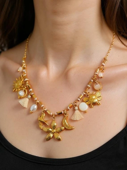 Collier Aurora Floralis - Breloques dorées et perles Eleganza
