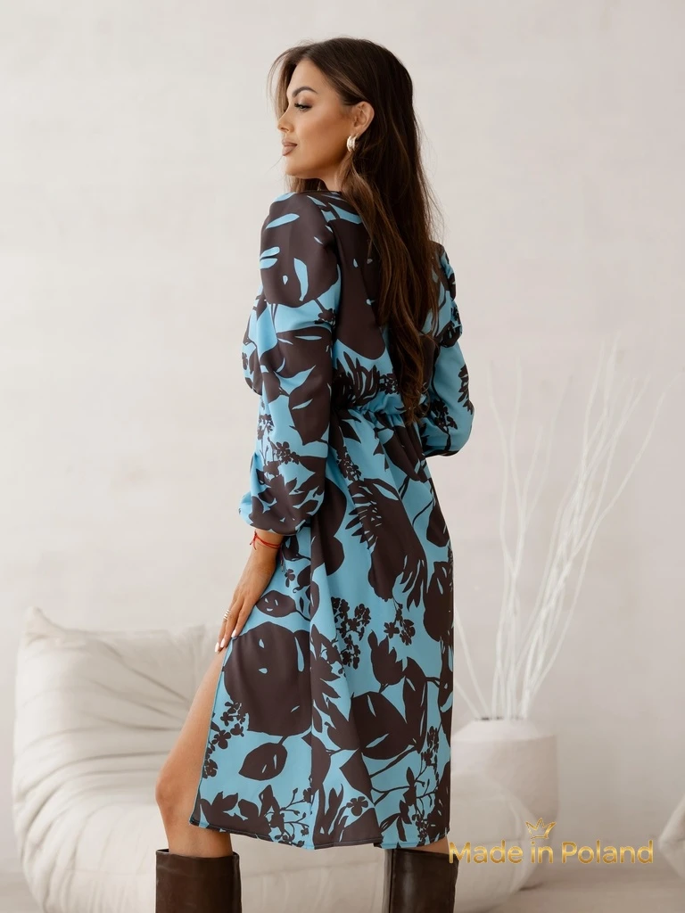 Robe Afrodyta Blu Oceano – midi bleue, manches longues, style classique