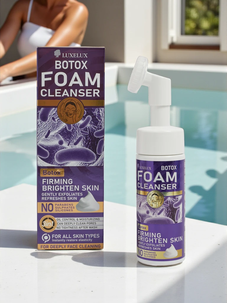 - La mousse nettoyante pour le visage avec brosse élimine efficacement les impuretés, tout en raffermissant et en régénérant la peau grâce à des ingrédients inspirés du Botox. La peau devient ferme, nourrie et éclatante.