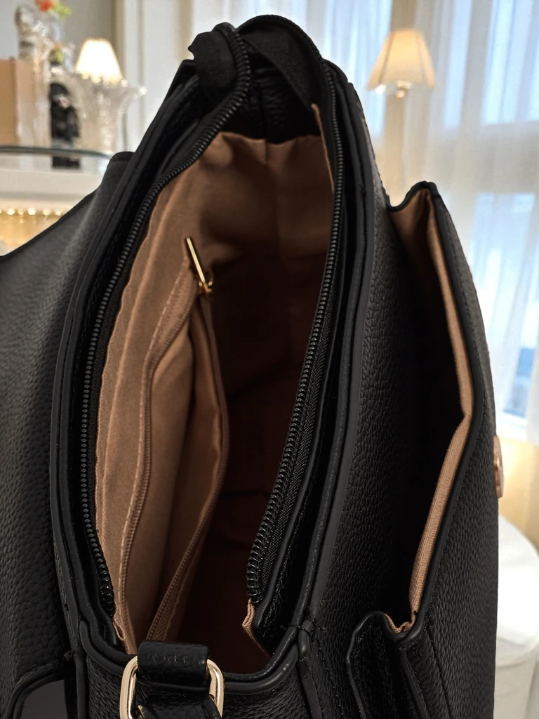 - Petit sac à main fabriqué à partir d'une combinaison de cuir écologique et de daim écologique. 1 compartiment, 3 poches, fermeture éclair et bandoulière amovible et réglable. Style et fonctionnalité dans une édition parfaite.