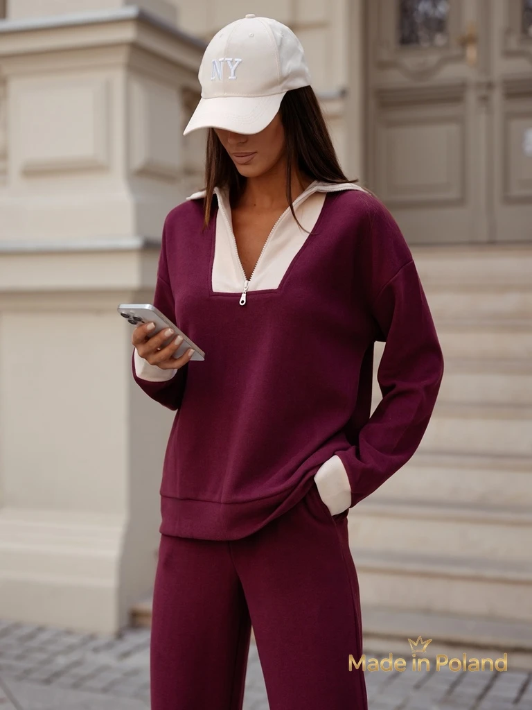 • Ensemble pull pour femme en coton agréable à porter. Haut avec fermeture éclair à l'encolure. Pantalon long avec élastique à la taille et 2 poches. Adoptez un style élégant avec cet ensemble magnifique !