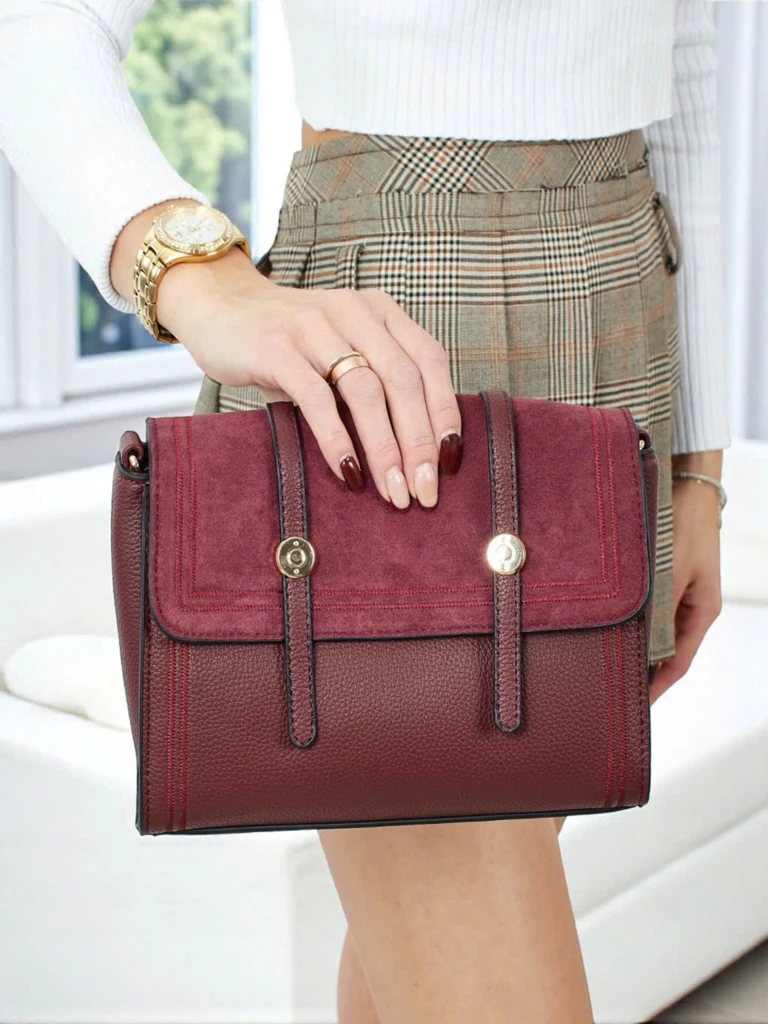 - Petit sac à main fabriqué à partir d'une combinaison de cuir écologique et de daim écologique. 1 compartiment, 2 poches, fermeture éclair et bandoulière amovible et réglable. Style et fonctionnalité dans une édition parfaite.