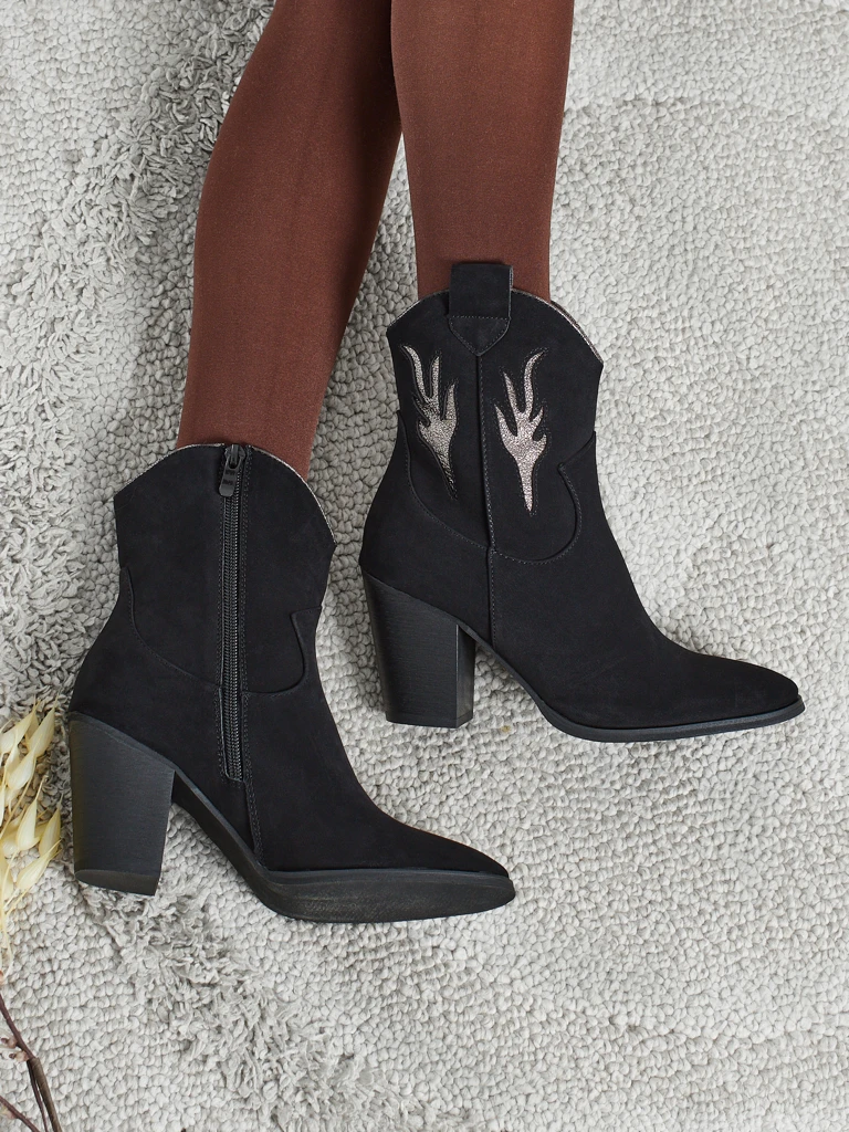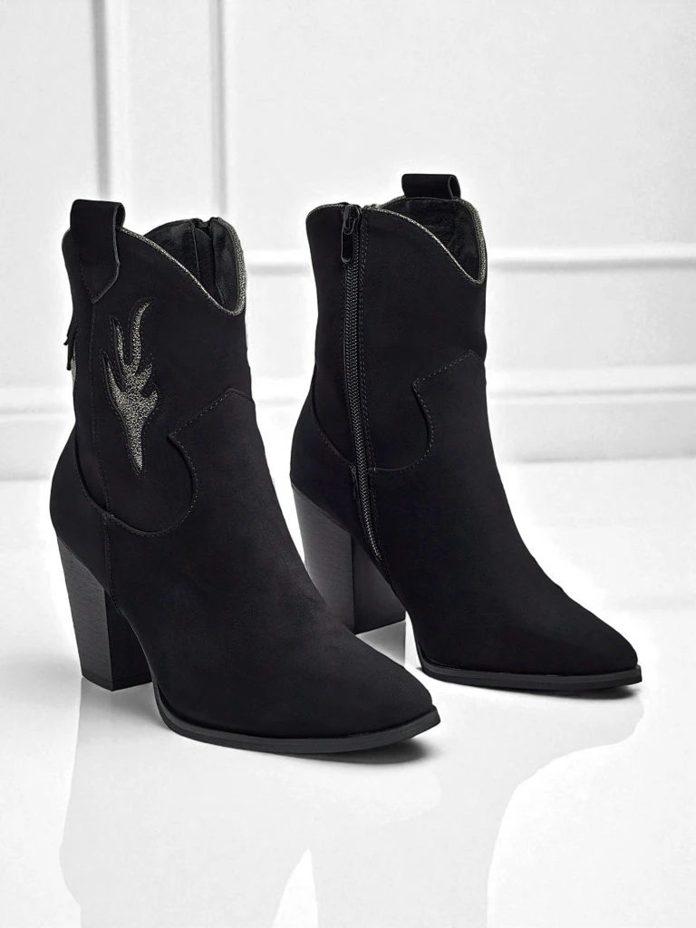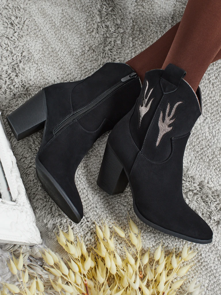 Bottines cow-boy à talon pour femmes avec inserts décoratifs Cendria