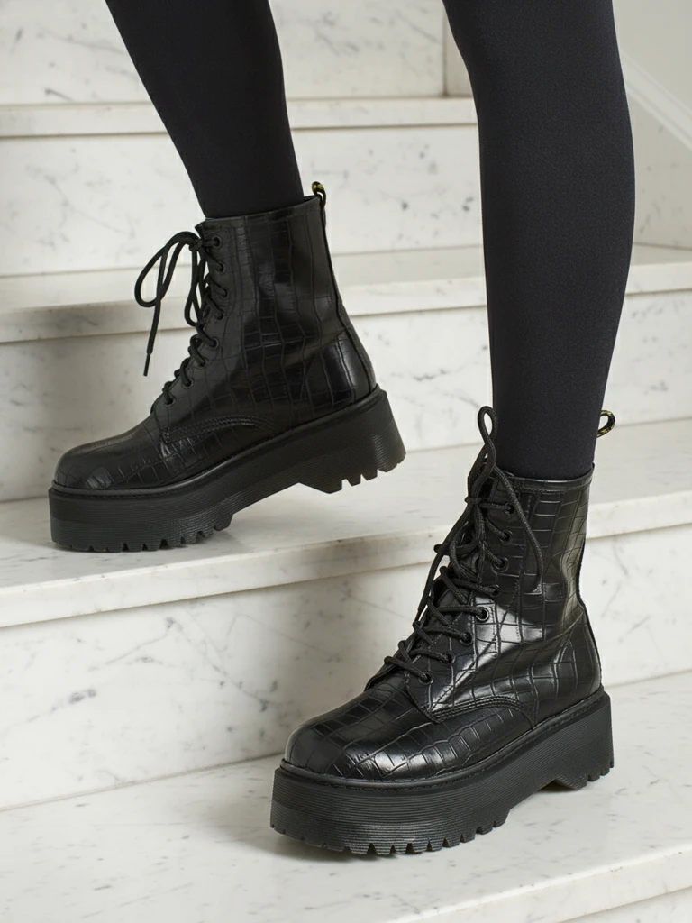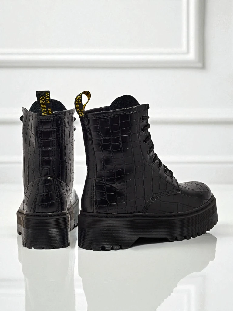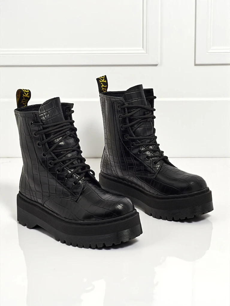 - Bottines montantes de type worker pour femmes en cuir écologique, à lacets. Modèle sur plateforme, intérieur en tissu. Un choix idéal pour les temps plus froids !