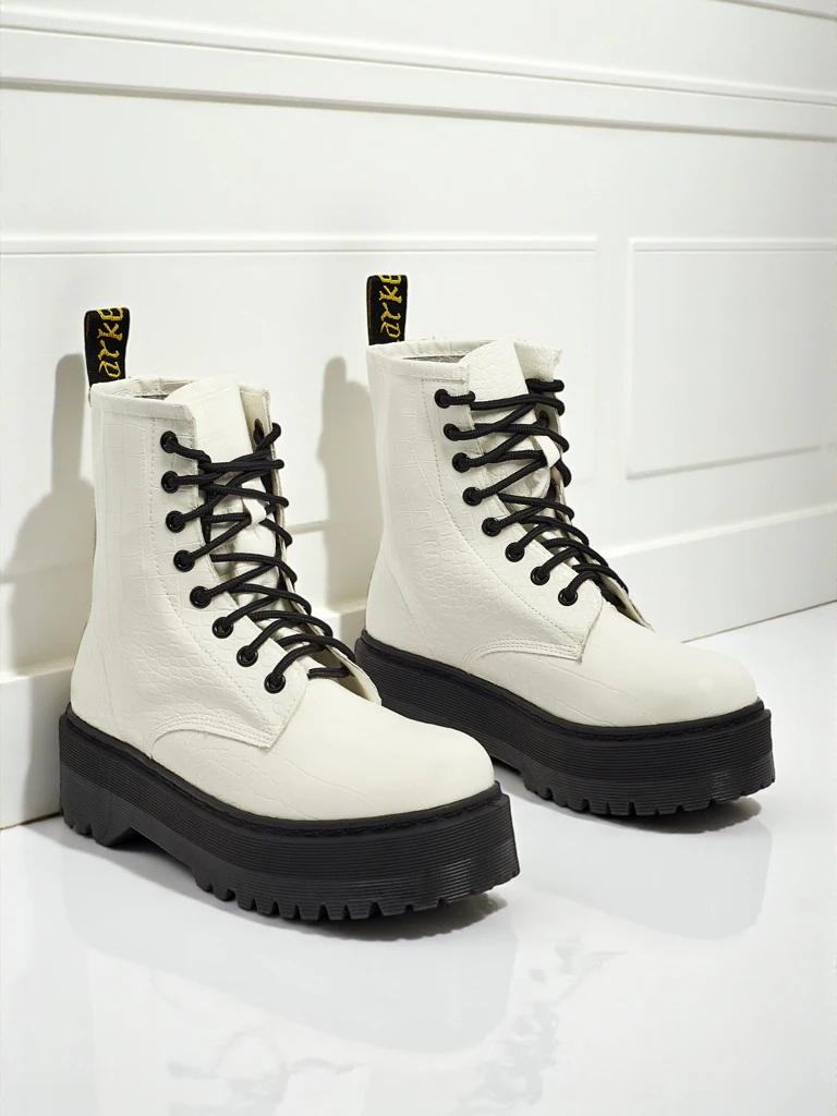 - Bottines montantes de type worker pour femmes en cuir écologique, à lacets. Modèle sur plateforme, intérieur en tissu. Un choix idéal pour les temps plus froids !