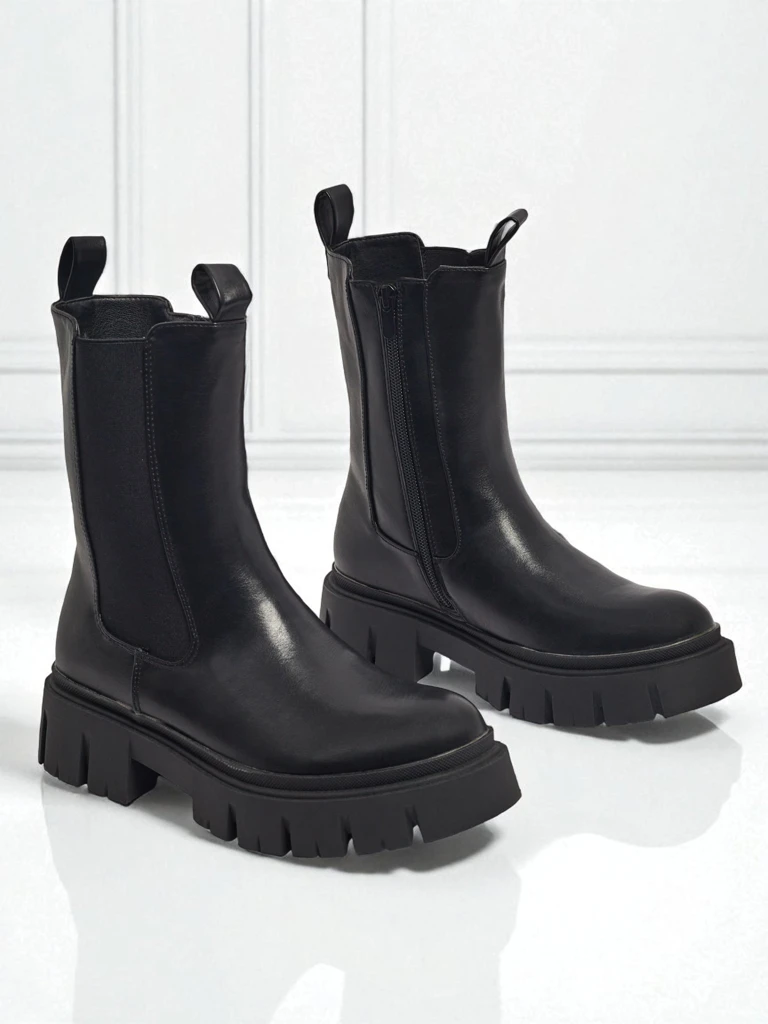 - Bottines pour femmes en cuir écologique, fermeture éclair. Modèle à semelle épaisse. Possède une isolation sous forme de fourrure. Confortable et élégant, parfait pour l'automne !
