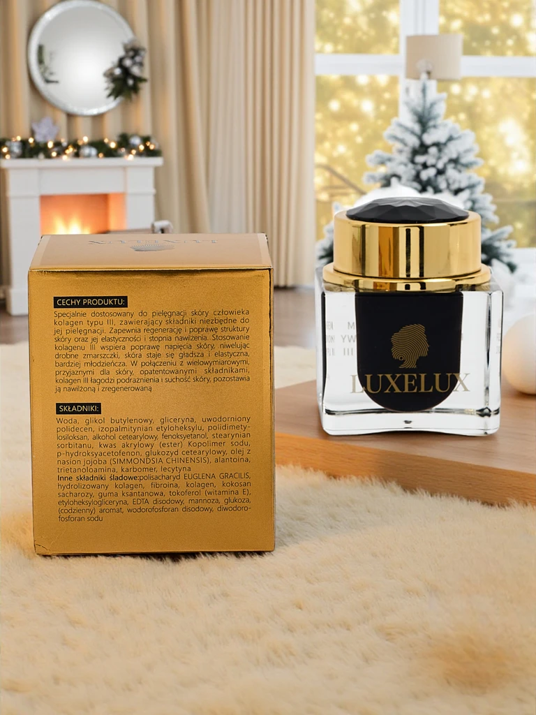 • La crème anti-âge de luxe Luxelux au collagène de type III régénère et raffermit intensément la peau. Grâce à une combinaison de technologies innovantes et d'ingrédients asiatiques, elle assure douceur, élasticité et une apparence plus jeune. Idéale pour
