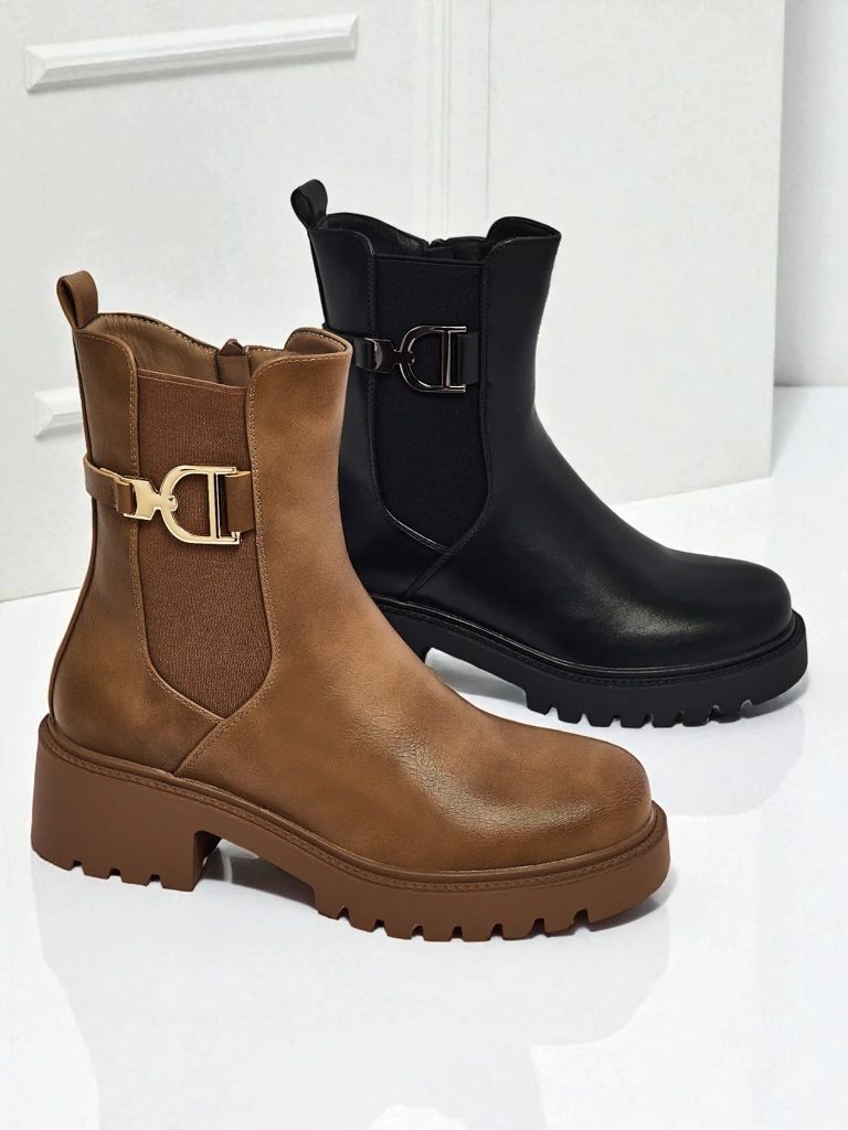 - Bottines pour femmes en cuir écologique, fermeture éclair et insert élastique sur le côté. Modèle à semelle épaisse. Possède une doublure en tissu. Confortable et élégant, parfait pour l'automne !