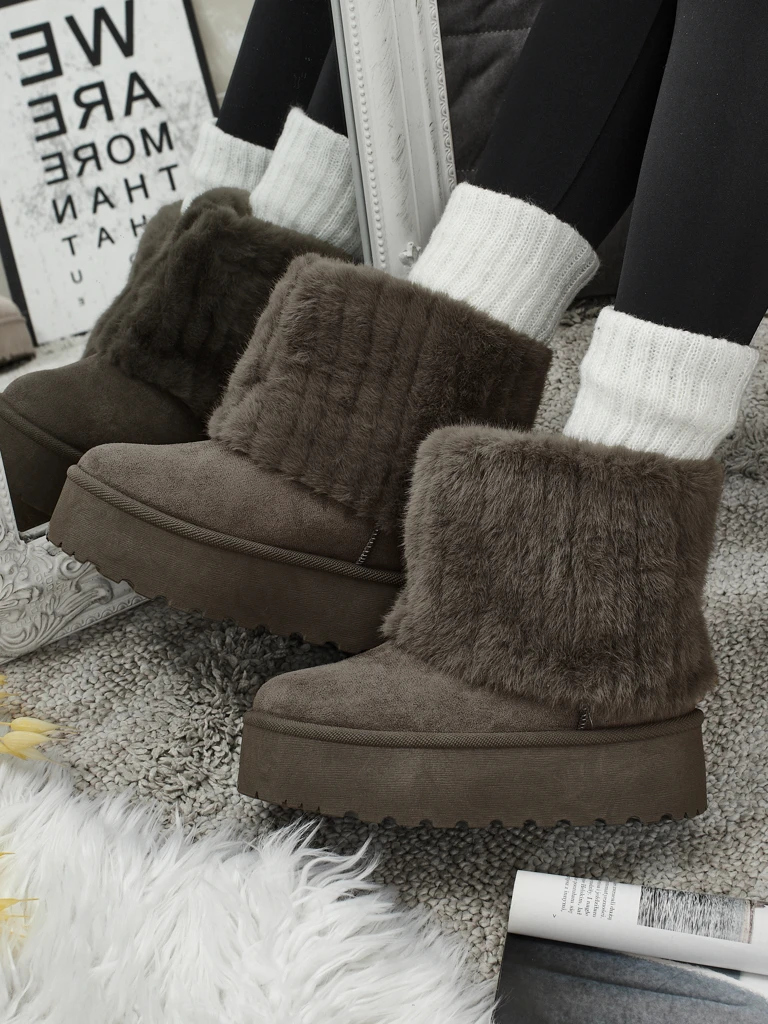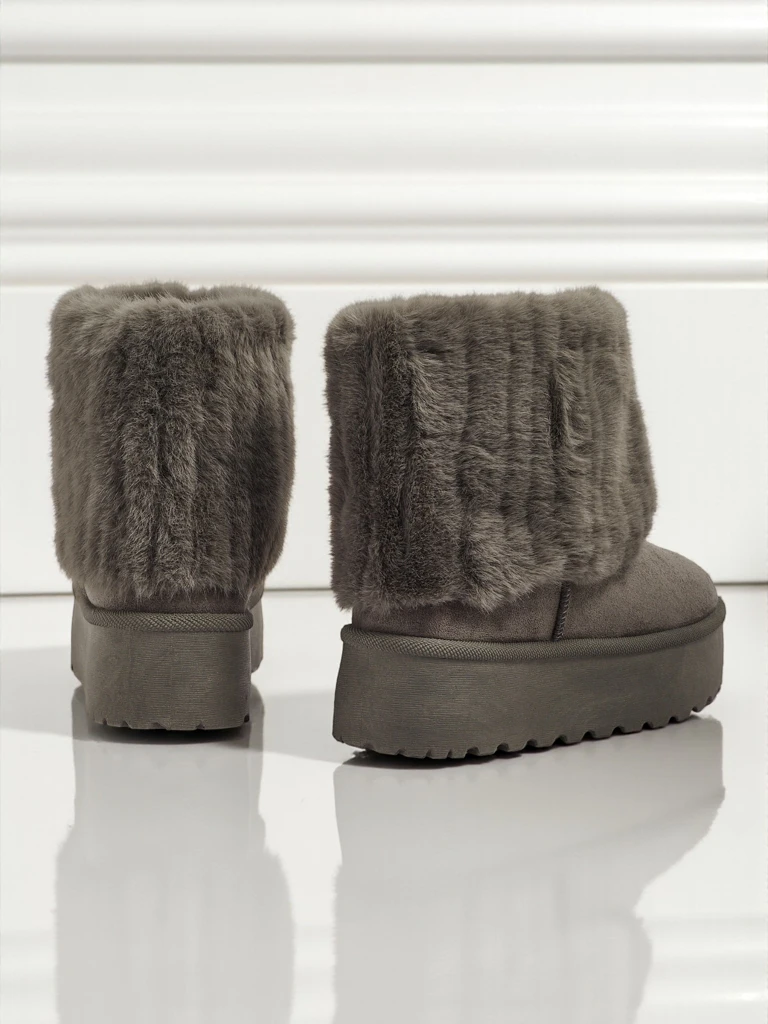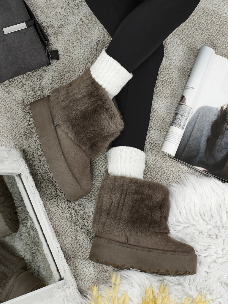 - Superbes bottes d'hiver pour femmes de type bottes de neige sur une semelle épaisse de type plateforme. La tige est en cuir écologique suédé, l'intérieur est isolé avec de la fourrure. Une base idéale pour l'hiver !