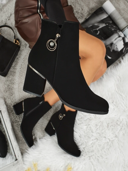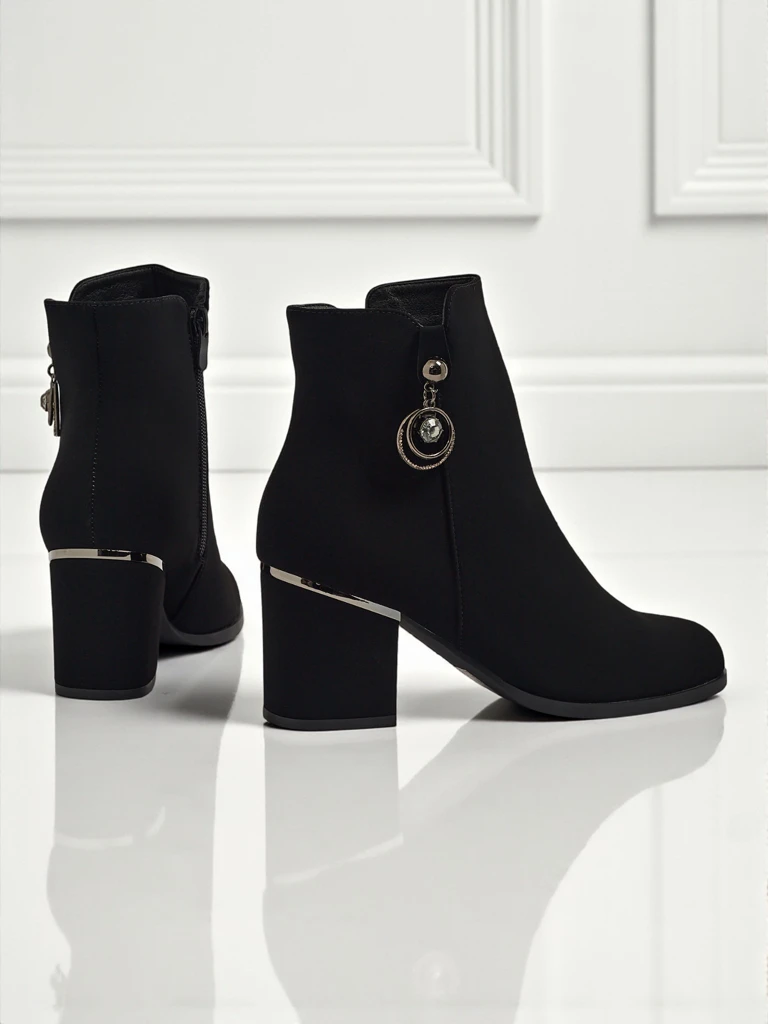 • Bottines confortables à talons épais, fabriquées en cuir écologique mat. Modèle fermé par une fermeture éclair. Le choix idéal pour l'automne !