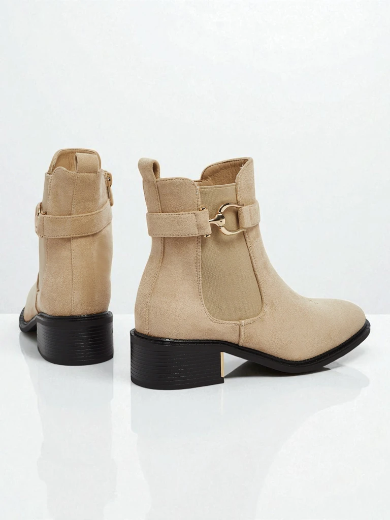 En portant les bottines Aurelia, vous pouvez profiter non seulement de leur esthétique, mais aussi de leur confort. L'utilisation d'un matériau élastique dans la partie supérieure et d'une semelle solide en font un choix idéal pour de longues promenades ou des sorties entre amis. Grâce à l'élégant accent doré, les bottines ajoutent du chic à toutes les tenues.