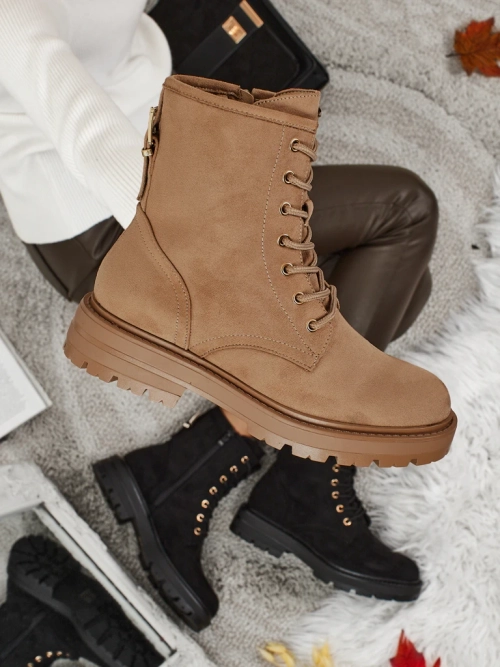 - Bottines de randonnée pour femmes avec tige lacée. Le matériau est en cuir écologique suédé. L'intérieur est isolé avec une fourrure délicate. Parfaites pour l'hiver !