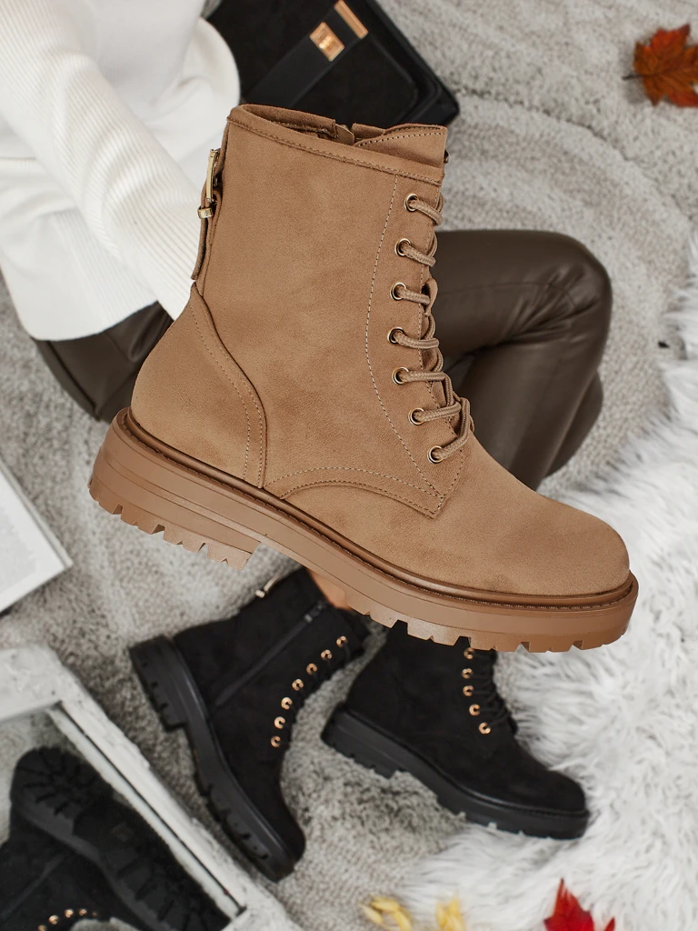 Odkryj niezrównany styl i komfort z botkami damskimi Terra Camel – sznurowanymi traperami na platformie, które staną się Twoim ulubionym elementem jesienno-zimowej garderoby. Nazwa "Terra", nawiązująca do łacińskiego słowa oznaczającego ziemię, doskonale oddaje ich naturalny, ugruntowany charakter i uniwersalność. Te modne botki to idealne połączenie funkcjonalności i najnowszych trendów.Materiały i Technologia Produkcji:Cholewka botków Terra Camel wykonana jest z wysokiej jakości zamszu syntetycznego w pięknym odcieniu karmelowego beżu. Materiał ten jest nie tylko przyjemny w dotyku i estetyczny, ale także wyjątkowo trwały i łatwy w pielęgnacji, co czyni go doskonałą alternatywą dla naturalnego zamszu, będąc jednocześnie przyjaznym dla zwierząt. Wnętrze buta wyściełane jest miękkim materiałem tekstylnym, zapewniającym komfort noszenia przez cały dzień. Solidna, gruba podeszwa z tworzywa sztucznego charakteryzuje się doskonałą amortyzacją i antypoślizgowymi właściwościami, gwarantując stabilność i bezpieczeństwo na każdej nawierzchni. Precyzyjne szycie i dbałość o każdy detal świadczą o wysokiej jakości wykonania.Korzyści i Wrażenia z Użytkowania:Botki Terra Camel to synonim wygody i pewności siebie. Gruba podeszwa skutecznie izoluje od zimnego podłoża i amortyzuje każdy krok, minimalizując zmęczenie stóp nawet po wielu godzinach noszenia. Sznurowanie pozwala na idealne dopasowanie do kształtu nogi, a dodatkowy ozdobny zamek z tyłu cholewki dodaje im unikalnego charakteru. Poczujesz się w nich stabilnie i komfortowo, niezależnie od tego, czy spacerujesz po mieście, czy spędzasz dzień na aktywnościach. Ich uniwersalny kolor sprawia, że łatwo wkomponują się w różnorodne stylizacje.Wskazówki Stylizacyjne:1. Casualowy Look: Połącz botki Terra Camel z klasycznymi jeansami rurkami lub modnymi mom jeans, oversize'owym swetrem w neutralnym kolorze i długą parką. To idealny zestaw na codzienne wyjścia, zakupy czy spotkania ze znajomymi.2. Miejski Edgy: Stwórz odważną stylizację, zestawiając trapery z czarnymi legginsami, długą koszulą w kratę i ramoneską. Dodaj dużą torbę typu shopper, aby podkreślić miejski, rockowy charakter.3. Kontrast z Kobiecością: Przełam konwencje, nosząc botki z dzianinową sukienką midi w odcieniach beżu, brązu lub butelkowej zieleni. Uzupełnij look wełnianym płaszczem i delikatną biżuterią, tworząc elegancki, ale jednocześnie swobodny outfit.Pielęgnacja i Czyszczenie:Aby botki Terra Camel służyły Ci jak najdłużej, zaleca się regularną pielęgnację. Zamsz syntetyczny należy czyścić specjalną szczotką do zamszu lub wilgotną ściereczką, delikatnie usuwając zabrudzenia. Unikaj moczenia butów. Po czyszczeniu warto zastosować impregnat do materiałów syntetycznych, który ochroni je przed wilgocią i plamami. Produkt objęty jest standardową gwarancją producenta, zgodnie z obowiązującymi przepisami prawa konsumenckiego.Trendy w Modzie:Trapery i botki na grubej podeszwie to absolutny hit ostatnich sezonów, który nie wychodzi z mody. Model Terra Camel doskonale wpisuje się w trend na obuwie inspirowane stylem militarnym i utility, jednocześnie zachowując elegancję dzięki swojemu kolorowi i wykończeniu. Naturalne, ziemiste odcienie, takie jak karmelowy beż, są niezwykle pożądane, ponieważ łatwo komponują się z paletą barw jesieni i zimy. Łączenie ciężkich butów z lekkimi, zwiewnymi elementami garderoby, takimi jak sukienki, to jeden z najgorętszych trendów, który pozwala na tworzenie unikalnych i wyrazistych stylizacji.