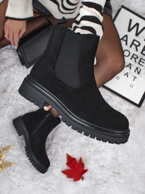 - Bottines élégantes et classiques de style Chelsea à semelle épaisse, fabriquées en cuir suédé écologique. L'intérieur est doté d'une isolation sous forme de fourrure délicate. Une base idéale pour les stylisations automnales !