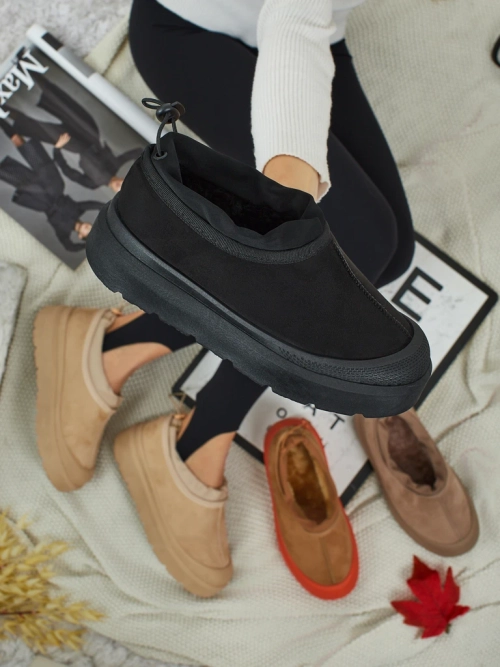 • Świetne damskie zimowe buty typu śniegowce na grubszej podeszwie typu platforma. Cholewka wykonana jest ze skóry ekologicznej zamszowej, środek ocieplony futerkiem. Idealna baza na zimę!