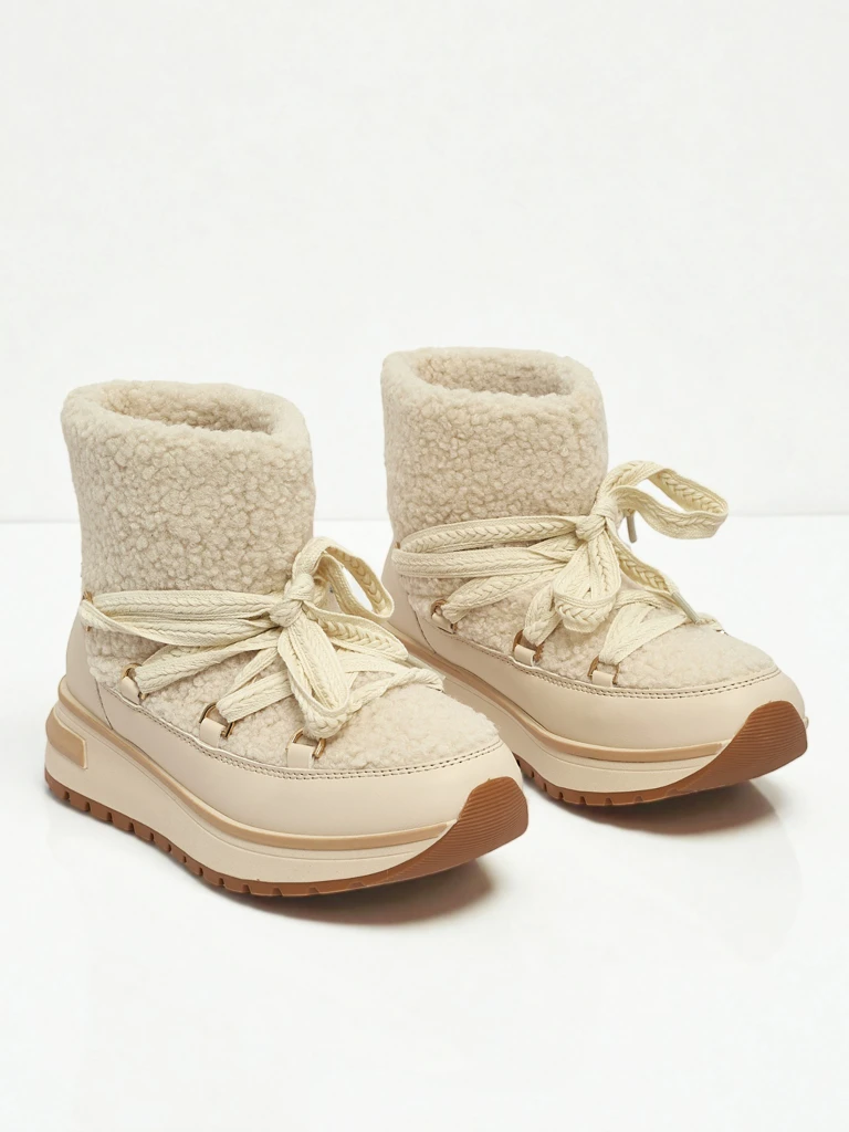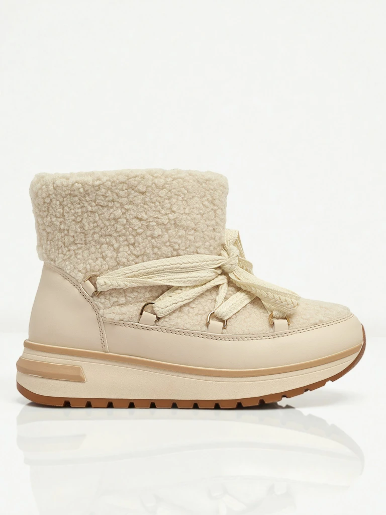 • Superbes bottes d'hiver pour femmes de type bottes de neige avec une semelle épaisse. La tige est en cuir écologique suédé et l'intérieur est isolé avec de la fourrure. Une base idéale pour l'hiver !