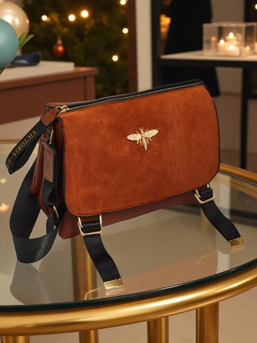 - Petit sac à main fabriqué à partir d'une combinaison de cuir écologique et de daim écologique. 3 compartiments, 4 poches, fermeture éclair et bandoulière réglable. Style et fonctionnalité dans une édition parfaite.