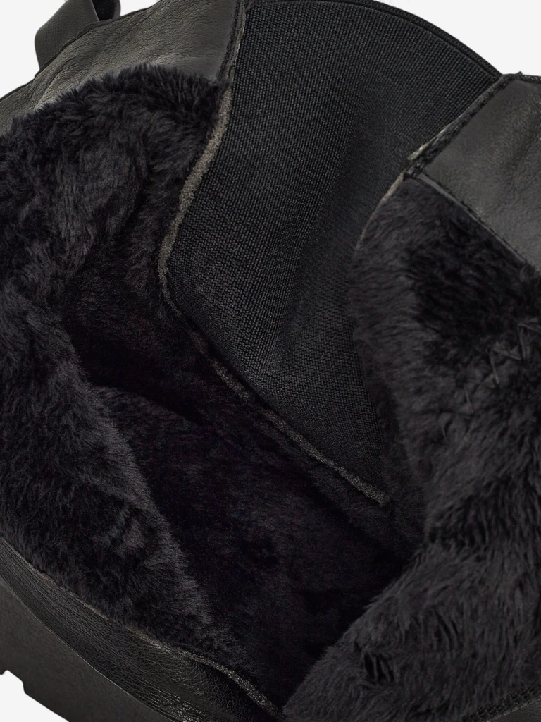 • Bottines pour femmes en cuir écologique, avec fermeture éclair et bout rond, avec en plus une isolation sous forme de fourrure - modernité, confort et style en un. Décorées d'un petit pois avec une boucle.