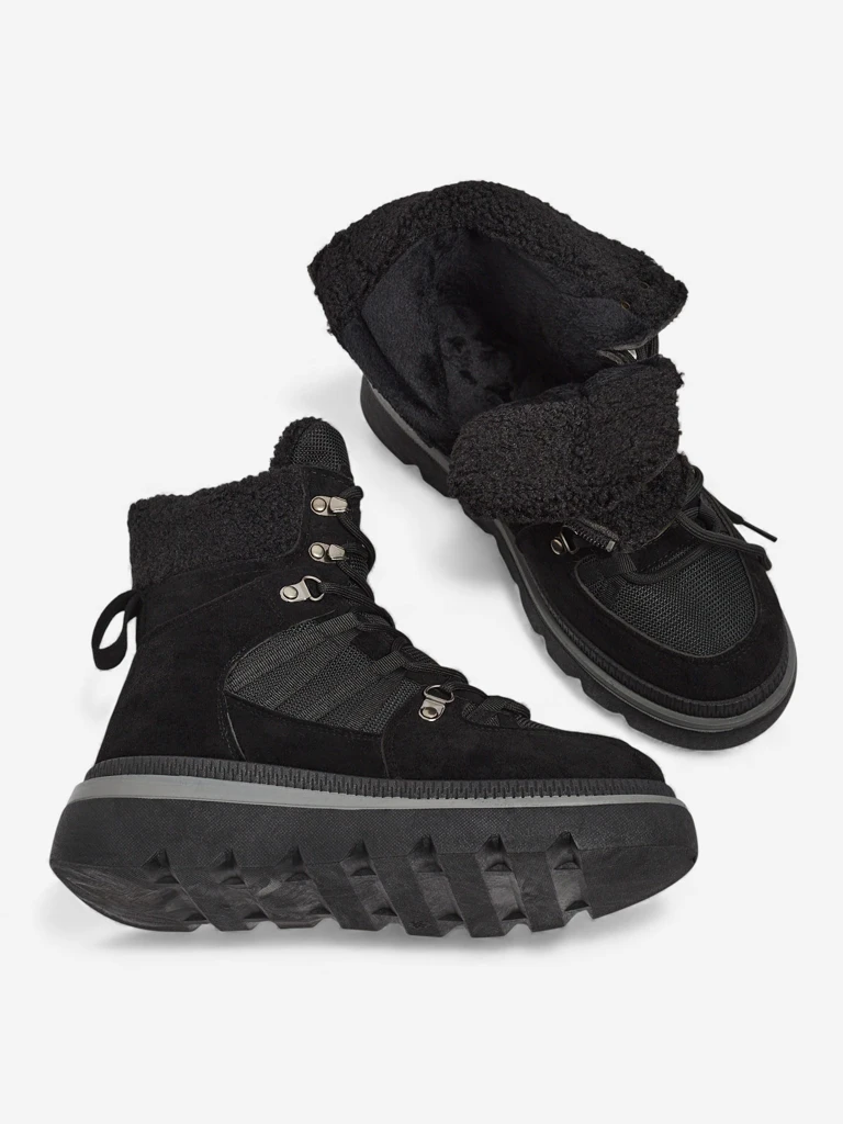 • Superbes bottes d'hiver pour femmes de type bottes de neige avec une semelle épaisse. La tige est en cuir écologique suédé, l'intérieur est isolé avec de la fourrure. Une base idéale pour l'hiver !