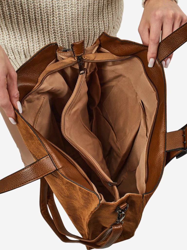 • Élégant sac à main pour femmes en cuir écologique suédé. 1 compartiment avec séparation, 4 poches, bandoulière amovible et réglable. Idéal pour le travail et au quotidien - spacieux, tendance et pratique.