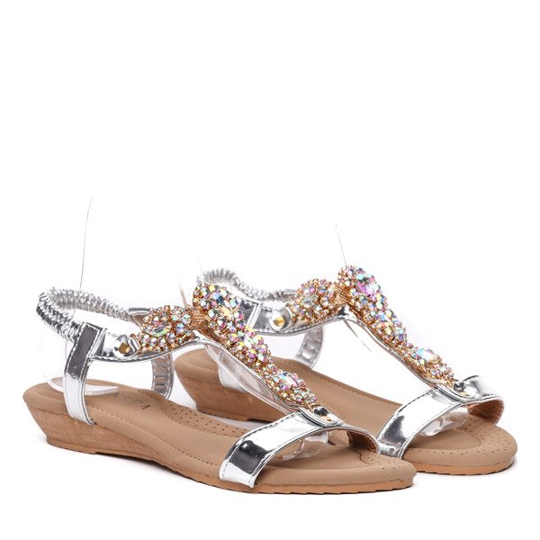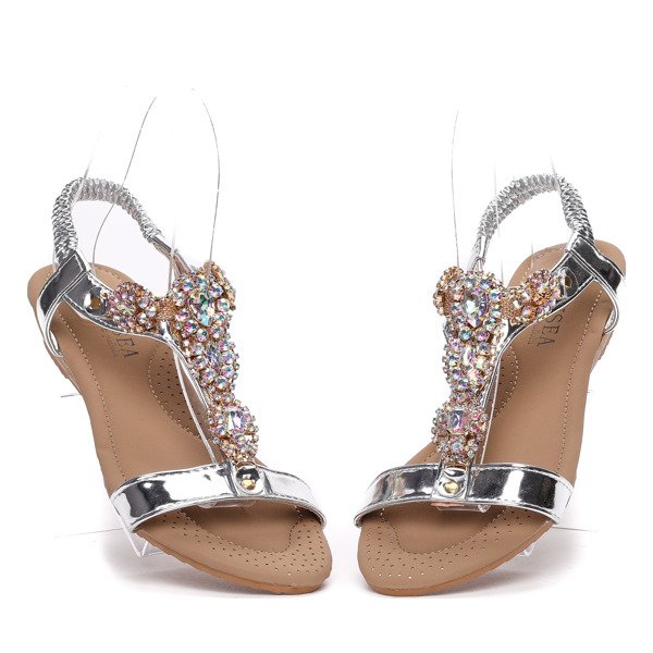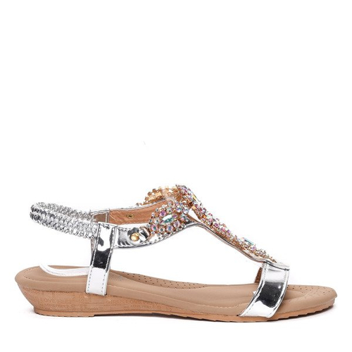 • Wygodne sandałki wykonane ze skóry ekologicznej. Model wsuwany, nie posiada zapięcia. Na paseczku ozdobne kryształki. Obuwie idealnie nada się na co dzień.