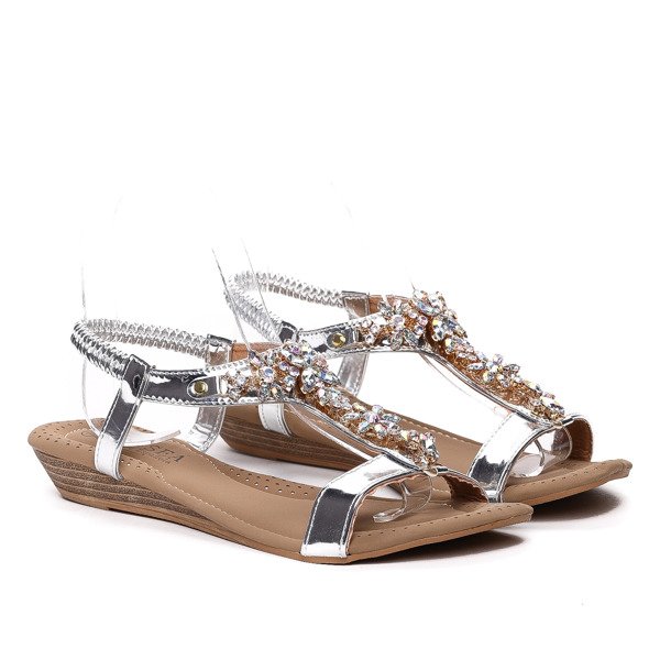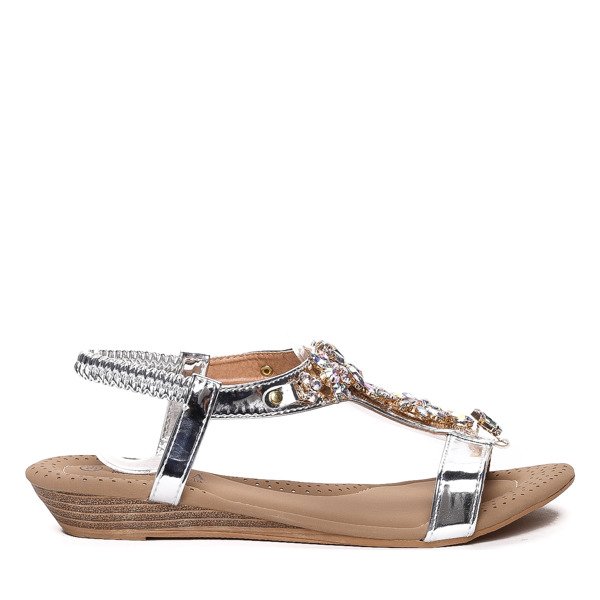 • Wygodne sandałki wykonane ze skóry ekologicznej. Model wsuwany, nie posiada zapięcia. Na paseczku ozdobne kamyczki. Obuwie idealnie nada się na co dzień.