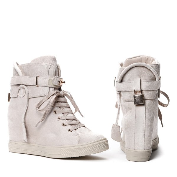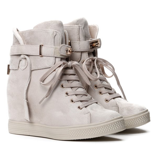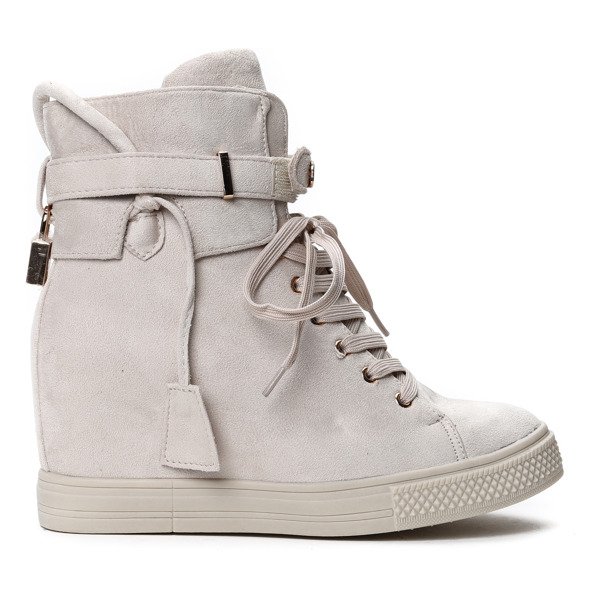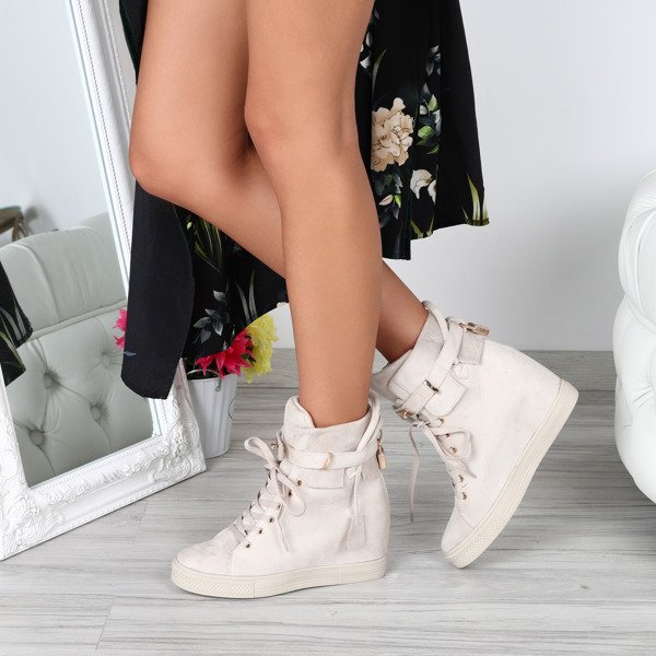 Beżowe sneakersy na koturnie - Obuwie
